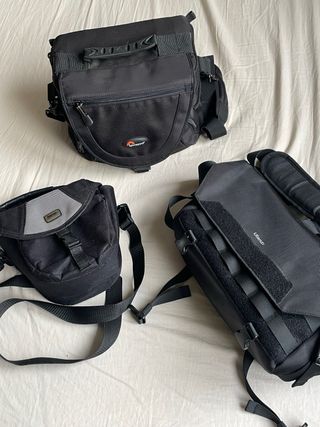 Bolsas para transportar equipo fotográfico, cámara y accesorios. Se venden por separado. - Mochila Lowepro 45€ - Mochila Ulanzi 35€ (nueva) - Mochila pequeña Hama 15€