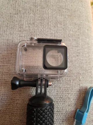 Este set incluye una carcasa sumergible y un palo flotante, ideal para tus aventuras acuáticas. - Carcasa transparente para GoPro y similares. - Palo flotante con agarre texturizado. - Correa de muñeca azul incluida. **La carcasa es compatible con camara de acción Xiaomi Yi camera.**