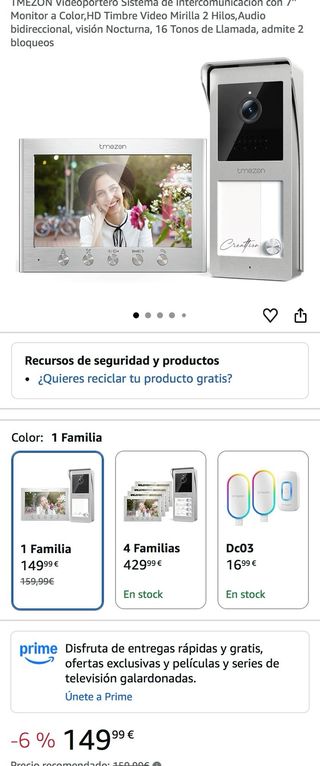 NUEVO SIN ESTRENAR. IDEAL PARA REGALO. Videoportero TMEZUN con monitor a color y audio bidireccional. - Monitor HD de 7 pulgadas. - Visión nocturna. - 16 tonos de llamada. - Admite 2 bloqueos.