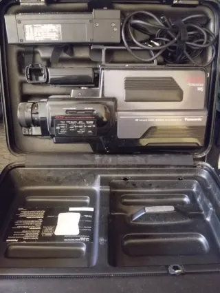 Vendo impresionante cámara de vídeo vintage VHS de Panasonic. Ideal para coleccionistas o para transportar tu equipo! Funciona correctamente! (solo falta pequeña lupa tercera foto) Diseño robusto y duradero. Asa superior para fácil transporte. Color negro y gris!