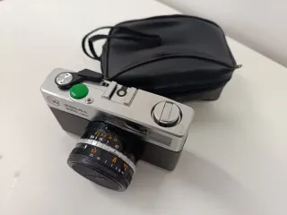 Cámara analógica Yashica J-mini en color negro. Un modelo compacto y fácil de usar. - Lente Yashica 32mm 1:3.5. - Flash integrado. -funda Se dejó de usar funcionando así que supongo que estará en uso pero no lo puedo confirmar,por ese motivo el precio.