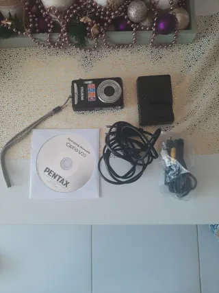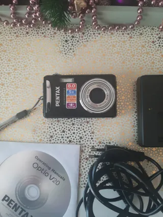 Cámara digital Pentax Optio V20 con accesorios. - Cámara Pentax Optio V20 - Cargador de batería - CD de manuales de usuario - Cables de conexión