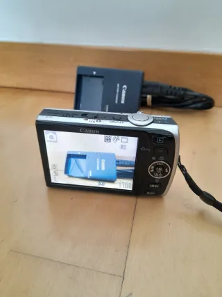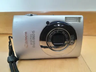 Cámara digital compacta Canon IXUS 860 IS en color plata. Ideal para capturar tus momentos especiales con buena calidad. - Zoom óptico 3.8x IS. - Resolución de 8.0 megapíxeles. - Lente de 6.1-17.7mm 1:2.8-5.8. ○ tarjeta de memoria de 4Gb ○ 3 baterías.