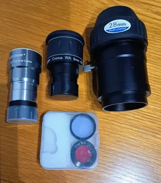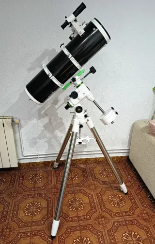 Telescopio Sky-Watcher 150/750 PDS (f/5) con montura ecuatorial EQ3-2 Black Diamond. Usado solo 3 veces, en estado prácticamente nuevo.Se vende por falta de uso. Ideal para observación visual y para iniciarse en astrofotografía. Todo original, valorado nuevo en unos 850€. Incluye: -Óptica PDS (apta para astrofotografía) -Montura EQ3-2 manual con trípode de acero y contrapesos -Ocular Sky-Watcher 28 mm (x27 aumentos) -Ocular Omegon Cronus WA 9 mm 60º (x83 aumentos) -Barlow x2 Celestron -Filtros de colores -Bolsa de transporte Solo entrega en mano.