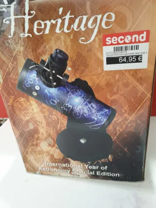 Telescopio Sky-Watcher Heritage 4, edición especial del Año Internacional de la Astronomía. - Diseño con motivos celestes. - Montura robusta. Artículo: FOTOS0004318 Modelo: heritage 4 Caracteristicas: caja un poco golpeada, lentes extra aparte de las originales Accesorios: lentes extra Estado: buen estado Second Company Cerdanyola Direccion: Av Primavera n*14, 08290, cerdanyola del valles Horario: De lunes a sabado de 10:00 a 13:30 y de 17 a 20:30 Telf. de contacto: 93.005.43.94 Atendemos en horario comercial. Envio a peninsula y baleares. No utilizamos plataforma WallaPay
