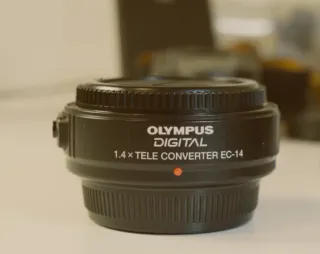 Duplicador de teleobjetivo Olympus EC-14. - Factor de multiplicación 1.4x. - Montura para cámaras Olympus. - Diseño compacto.