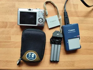 Cámara digital Canon IXUS 60 en color plata y negro. Incluye accesorios para su uso. En perfecto estado de funcionamiento, se ha usado muy poco. Único dueño. - Cargador de batería Canon. - Batería Canon. - Mini trípode. - Funda de transporte. -Cable cargador y batería.