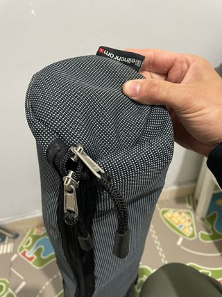 Bolsa semirrígida original para equipo Elinchrom. Protege tu material de forma segura y cómoda. - Diseño elegante en color gris. - Cierre de cremallera. - Logo de la marca visible.
