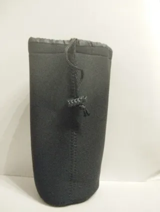 Funda protectora de neopreno para objetivos de fotografía. Ideal para transportar tu equipo de forma segura. - Color negro. - Cierre con cordón. - Incluye mosquetón para colgar. - Medidas: 25 cm de alto por 10 cm de diámetro.