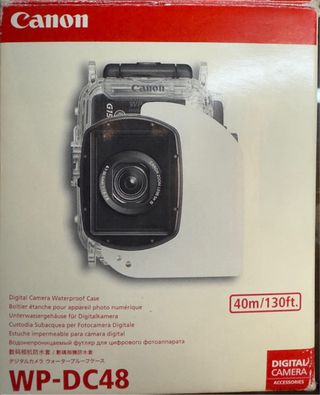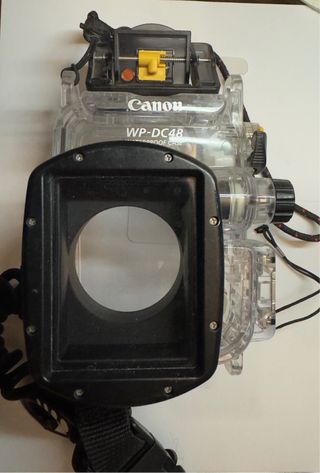 Carcasa submarina para cámaras Canon modelo WP-DC48. - Diseño transparente para ver el interior. - Incluye accesorio frontal. - Correa de seguridad.