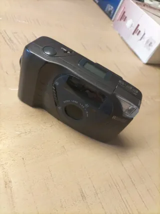 Cámara analógica Ricoh FF-9 en color gris. Un modelo compacto y fácil de usar. - Lente Ricoh 35mm f/3.5. - Flash integrado. - Temporizador automático (Self-timer).