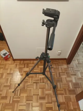 Trípode compacto y ligero, ideal para fotografía y vídeo. - Diseño plegable para fácil transporte. - Cabezal con movimiento fluido. - Le falta base agarre (ver última foto) - Altura máxima 65 cm