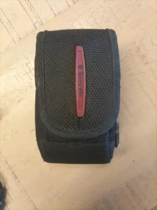 Funda protectora para cámara fotográfica de la marca Samsonite. Diseñada en color negro con un detalle rojo. - Material textil resistente. - Cierre de cremallera. - Detalle frontal con logo. - Medidas 11x6,5