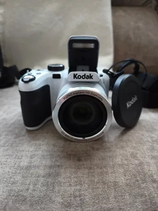 Cámara digital Kodak PIXPRO AZ422 con zoom óptico y varios modelos de fotografía. No se incluye batería ni tardeta SD, funciona perfectamente. Incluye funda para transporte y prqueño trípode de sujeción. Se entrega en caja original con manual de instrucciones. - Lente Aspheric HD Zoom. - Zoom 42x Wide 24-100mm. - Color blanco y negro.