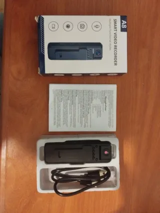Mini cámara corporal compacta, ideal para grabar audio y video. - Diseño discreto y portátil. - Incluye cable de conexión.