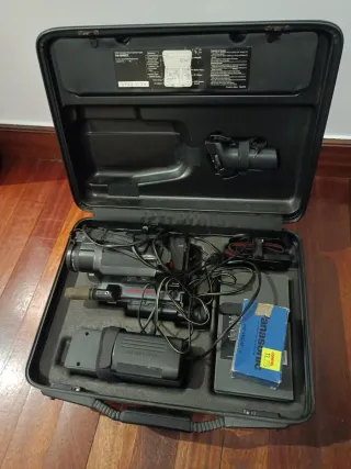 Cámara de vídeo analógica Panasonic MC5 en formato VHS-C, ideal para coleccionistas. - Modelo de alta gama de su época. - Diseño robusto y profesional. - Incluye cargador y accesorios originales -Ideal para atrezzo en espectáculos de época