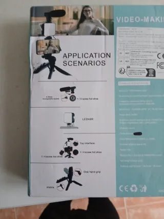 Kit completo para la creación de contenido audiovisual. - Incluye micrófono. - Incluye luz LED. - Soporte para móvil.