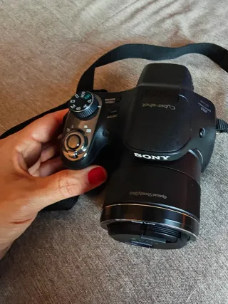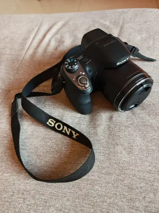 Cámara digital tipo puente Sony Cyber-shot DSC-HX400 en color negro. Cuenta con un sensor CCD Super HAD de 20,1 megapíxeles. •Posee un potente zoom óptico de 63x (equivalente a 24.5-1550 mm). •Incluye estabilización de imagen óptica SteadyShot. ·Permite grabar vídeo en calidad HD de 720p. Regalo funda Casi no la hemos usado,en muy buenas condiciones