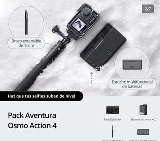 Cámara de acción DJI Osmo Action 4 en color negro. - Combo Creator. - Campo de visión de 155°. - Apertura f/2.8.