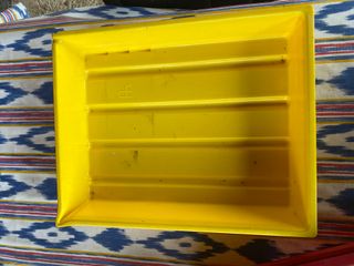 Conjunto de tres bandejas para revelado fotográfico, ideales para trabajar con formatos de hasta 30x40 cm. - Bandeja roja. - Bandeja verde. - Bandeja amarilla.