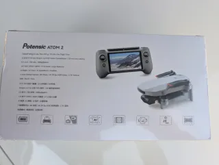 Drone Potensic ATOM 2 en color gris y blanco. Diseñado para ofrecer una experiencia de vuelo avanzada. - Peso inferior a 249 g. - Tiempo de vuelo máximo de 32 minutos. - Transmisión de vídeo FHD PixSync 4.0 hasta 10 km. - Pantalla de 5.5 pulgadas con 700 nits y 1080p@60Hz. - Cámara CMOS de 1/2 pulgada con 48 MP y apertura f/1.8. - Funciones: AI Night, AI Track, AI QuickShots, CineRoll. - Cámara con gimbal de 3 ejes. - Fotografía 8K, vídeo HDR 4K a 30 fps, vídeo vertical 2.7K. - Modos de vuelo: BRK, Burst, Pano. - Latencia de vídeo de 120 ms.