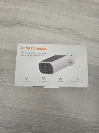 Cámara de seguridad para exteriores con diseño robusto y panel solar integrado. - Resolución 2.5K. - Conexión WiFi 5GHz y 2.4GHz. - Resistente al agua IP67. - Garantía de 2 años. - Resistente a la temperatura.