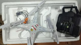 Se venden dos drones Syma X5C-1 para despiece con sus accesorios. Se vende lo que se ve en las fotografías. No incluye tarjetas de memoria ni baterías. 1 mando sulfatado, el otro no.
