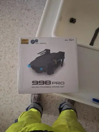 Drone 998 Pro, un micro dron plegable. - Cámara 4K Ultra HD. - Doble cámara. - Edad recomendada: 14+. Nuevo a estreno precintados 8 unidades disponibles