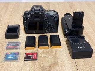 Cámara Canon EOS 7D + accesorios: - Grip. - Cargador de batería Canon. (Inglés) - Cargador doble TOPMAX. (Con cable aunque no aparezca en foto) - 3 baterías. - Tarjeta SanDisk Extreme III CompactFlash 4GB. - Tarjeta Transcend CompactFlash 4GB. - Tarjeta Kingston CompactFlash 16GB.