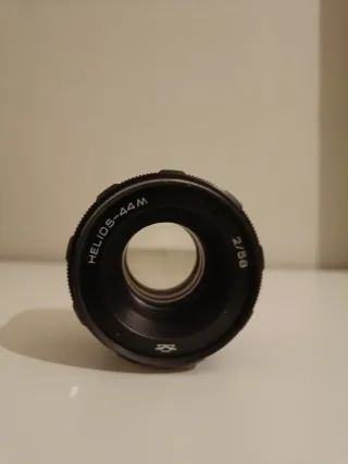 Objetivo Helios 44M con una apertura de f/2 y una distancia focal de 58mm. - Montura M42. - Fabricado en la URSS por KMZ. Funciona perfectamente, sin hongos, ni aceite en el diafragma.