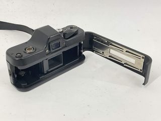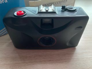 Cámara fotográfica analógica de 35 mm. - Cuerpo de plástico negro. - Zapata para flash externo. - Botón de disparo rojo.