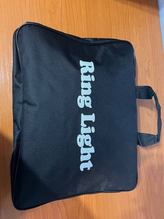 Funda negra para Ring Light en perfecto estado. Es resistente y cuenta con asas para facilitar su transporte. - Material: tela. - Color: negro. - Cierre de cremallera (está estropeado el cierre, se ve en ma foto) No está usado y funciona perfectamente