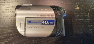 Videocámara Sony Handycam con zoom óptico de 40x. - Lente Carl Zeiss. - Grabación DVD. - Pantalla LCD. - La cámara funciona perfectamente, viene con un DVD sin usar, un cargador, un cable A/V y una batería. - La batería es antigua y dura poco, por lo demás está perfecta. - Utiliza baterías Sony NP-FH40