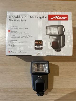 Flash electrónico Metz mecablitz 50 AF-1 digital. - Compatible con Nikon TTL/D-TTL/3D/HSS/i-TTL Remote. - Galardonado con el premio PLUS X AWARD por su alta calidad y facilidad de uso.