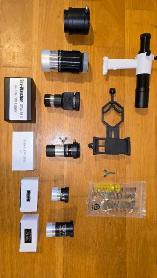 Posibilidad de entrega particular (consultar) Oculares: 25 y 10mm de 1,25" Barlow 2x incluida Buscador: 6x30 Adaptador para movil Cola de milano y anillas Kit herramientas Tubo: Diseño óptico: Reflector Newton Diámetro: 150mm Distancia focal: 750mm Relación focal: f/5 Máximo aumento recomendable: 300x Magnitud estelar límite: 13 Poder de resolución: 0.8 segundos de arco Portaocular: 2" (con adaptador a 1.25") Enfocador Piñón y Cremallera Dimensiones del tubo: 182 x 690mm Ocular SkyWatcher WA SuperPlössl 5mm opcional por 40 euros No incluye montura
