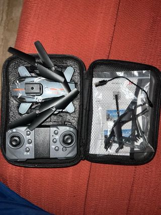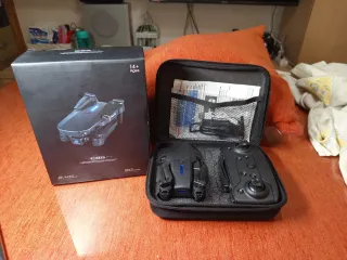 Este dron plegable viene con su control remoto y estuche de transporte. - Dron plegable - Control remoto - Estuche de transporte -batería,cable,y repuestos