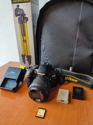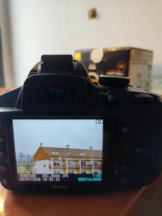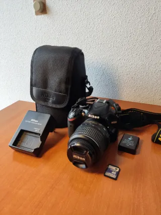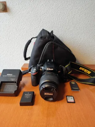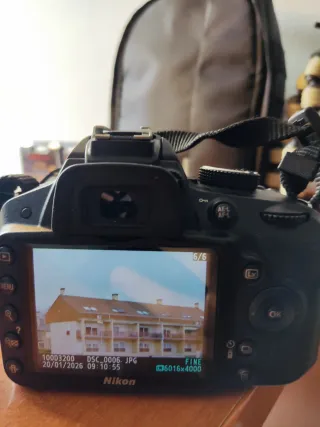 ✅ Nikon D3200 con batería, cargador, bolsa de transporte, tarjeta de memoria, caja original y objetivo con estabilización. Está muy cuidada, tal cual en las fotos. Fue un regalo, está como nueva. Cámara de 24.2 megapixeles, en las últimas fotos se puede ver la calidad de imagen. Tan solo tiene 2170 disparos. 🎁 Es una cámara con una calidad profesional para fotos, perfecta para iniciarse y para aprender a usar una cámara profesional de manera manual. 📤 Se hacen envíos y se entrega en Salamanca y Ciudad Rodrigo.