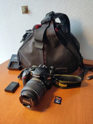 ✅ Nikon D3200 reflex con batería, cargador, tarjeta de memoria, bolsa de transporte profesional y objetivo con estabilización. Está muy cuidada, tal cual en las fotos. Fue un regalo. Cámara de 24.2 megapixeles, en las últimas fotos se puede ver la calidad de imagen. Tan solo tiene 11700 disparos. 🎁 Es una cámara con una calidad profesional para fotos, perfecta para iniciarse y para aprender a usar una cámara profesional de manera manual. 🎦 Graba videos 1080 fullhd Ideal como regalo para un familiar o para iniciarse. 📤 Se hacen envíos y se entrega en Salamanca y Ciudad Rodrigo.