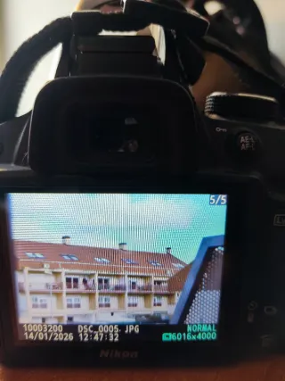 ✅ Nikon D3200 con batería, cargador, bolsa de transporte, filtro UV, tarjeta de memoria y objetivo con estabilización. Está muy cuidada, tal cual en las fotos. Fue un regalo. Cámara de 24.2 megapixeles, en las últimas fotos se puede ver la calidad de imagen. Tan solo tiene 6400 disparos, muy poco uso. 🎁 Es una cámara con una calidad profesional para fotos, perfecta para iniciarse y para aprender a usar una cámara profesional de manera manual. 🎦 Graba videos 1080 fullhd Ideal como regalo para un familiar o para iniciarse. 📤 Se hacen envíos y se entrega en Salamanca y Ciudad Rodrigo. nikond3500, nikond