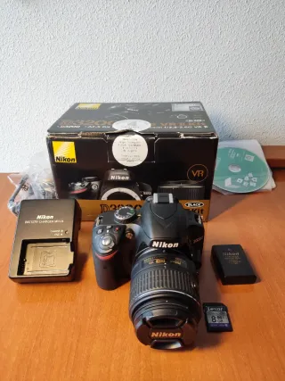 ✅ Nikon D3200 con batería, cargador, bolsa de transporte, tarjeta de memoria, caja original y objetivo con estabilización. Está muy cuidada, tal cual en las fotos. Fue un regalo, está como nueva. Cámara de 24.2 megapixeles, en las últimas fotos se puede ver la calidad de imagen. Tan solo tiene 2170 disparos. 🎁 Es una cámara con una calidad profesional para fotos, perfecta para iniciarse y para aprender a usar una cámara profesional de manera manual. 🎦 Graba videos 1080 fullhd Ideal como regalo para un familiar o para iniciarse. 📤 Se hacen envíos y se entrega en Salamanca y Ciudad Rodrigo. nikond3500, nikond