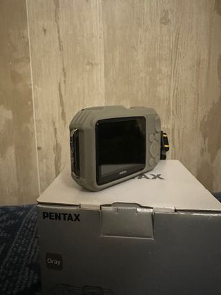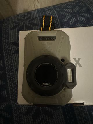 Cámara Pentax WG, ideal para aventuras. - Sumergible y resistente a golpes. - Diseño robusto y compacto. Viene con caja original y todos los accesorios: enganche de aventura y funda de silicona