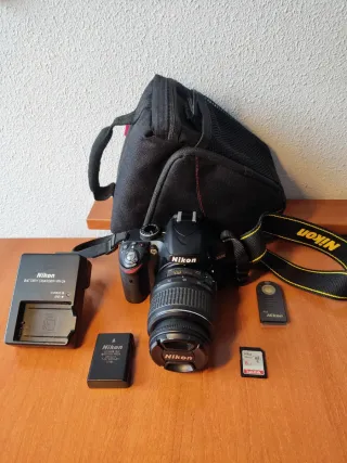 ✅ Nikon D3200 con batería, cargador, bolsa de transporte, mando a distancia, tarjeta de memoria y objetivo con estabilización. Está muy cuidada, tal cual en las fotos. Fue un regalo. Cámara de 24.2 megapixeles, en las últimas fotos se puede ver la calidad de imagen. Tan solo tiene 8700 disparos. 🎁 Es una cámara con una calidad profesional para fotos, perfecta para iniciarse y para aprender a usar una cámara profesional de manera manual. 🎦 Graba videos 1080 fullhd Ideal como regalo para un familiar o para iniciarse. 📤 Se hacen envíos y se entrega en Salamanca y Ciudad Rodrigo. nikond3500, nikond