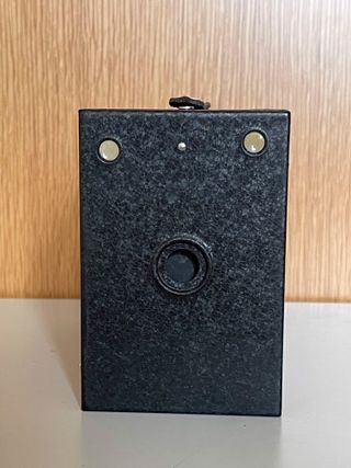 Cámara fotográfica de caja Kodak six-20 brownie junior. Incluye funda de tela. - Diseño retro. - Color negro y detalles en dorado. - Funda de tela. En bastante buen estado, funciona bien en las distintas velocidades y la lente y los dos visores están limpios. Utilizaba película de 620, aún conserva una bobina. cámaras, analógica, colección, cajón, antigua, vintage, pack, fotos, fotógrafo, coleccionismo, antigüedad, box, caja, estuche, clásica, transporte, compacta, coleccionista, fotografía, decoración, decorativa