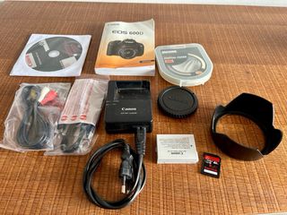 Se vende lote de cámara Canon EOS 600D con accesorios. - Cuerpo de cámara Canon EOS 600D. - Objetivo Canon EF-S 18-135mm IS. - Bolsa de transporte Canon. - Cargador de batería Canon. - Batería. - Correa para el cuello. - Tapa de objetivo. - Parasol. - Filtro digital. - Cables de conexión. - Manual de usuario. - CD de software. Muy poco uso