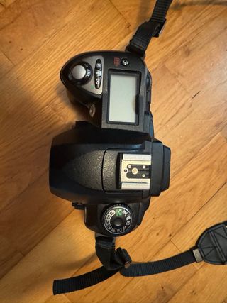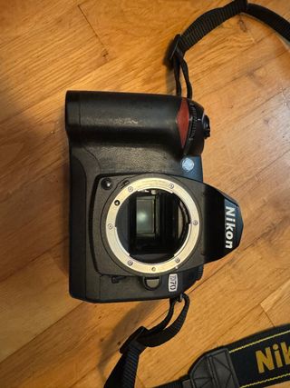 Cámara réflex digital Nikon D70. - Cuerpo de cámara en color negro. - Incluye correa para el cuello. Tiene pintar de estar muy usada o no funcionar. Como no tengo batería no puedo comprobar si enciende así que la vendo para piezas/reparaciones. Por lo que no admito devoluciones, lo dejo bien claro y de ahí el precio.