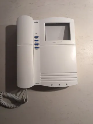 Videoportero Auta Compact Visualtech 5H en color blanco. - Diseño moderno y funcional. - Pantalla integrada. - Auricular con cable en espiral.