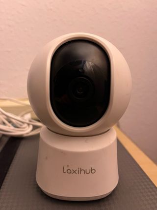 Cámara de seguridad para interiores de la marca Laxihub. Diseñada para vigilar tu hogar. - Color blanco. - Diseño moderno y discreto.
