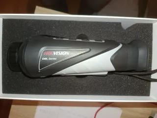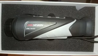 Visor nocturno de la marca Hikvision, modelo OWL-Series. Diseñado con un acabado en negro y detalles en gris claro, presenta una forma ergonómica y compacta. - Diseño en negro y gris. - Forma ergonómica.