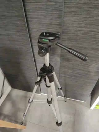 Trípode plegable de 157 cm de altura. Es ligero y fácil de transportar. - Altura máxima: 157 cm - Material: Aluminio y plástico - Color: Plateado y negro Regulable varias alturas y robusto