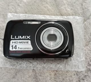 Cámara digital Lumix en color negro, con 14.1 megapíxeles y capacidad de grabación HD Movie. Cuenta con estabilizador óptico de imagen. Se envia con una funda y un cargador compatible ya que el original lo perdí. Modelo: Panasonic DMC-S3 - Lente Lumix DC Vario. - Zoom óptico. - Modelo Panasonic DMC-S3. Está cámara apenas se ha usado por lo que está en muy buen estado.